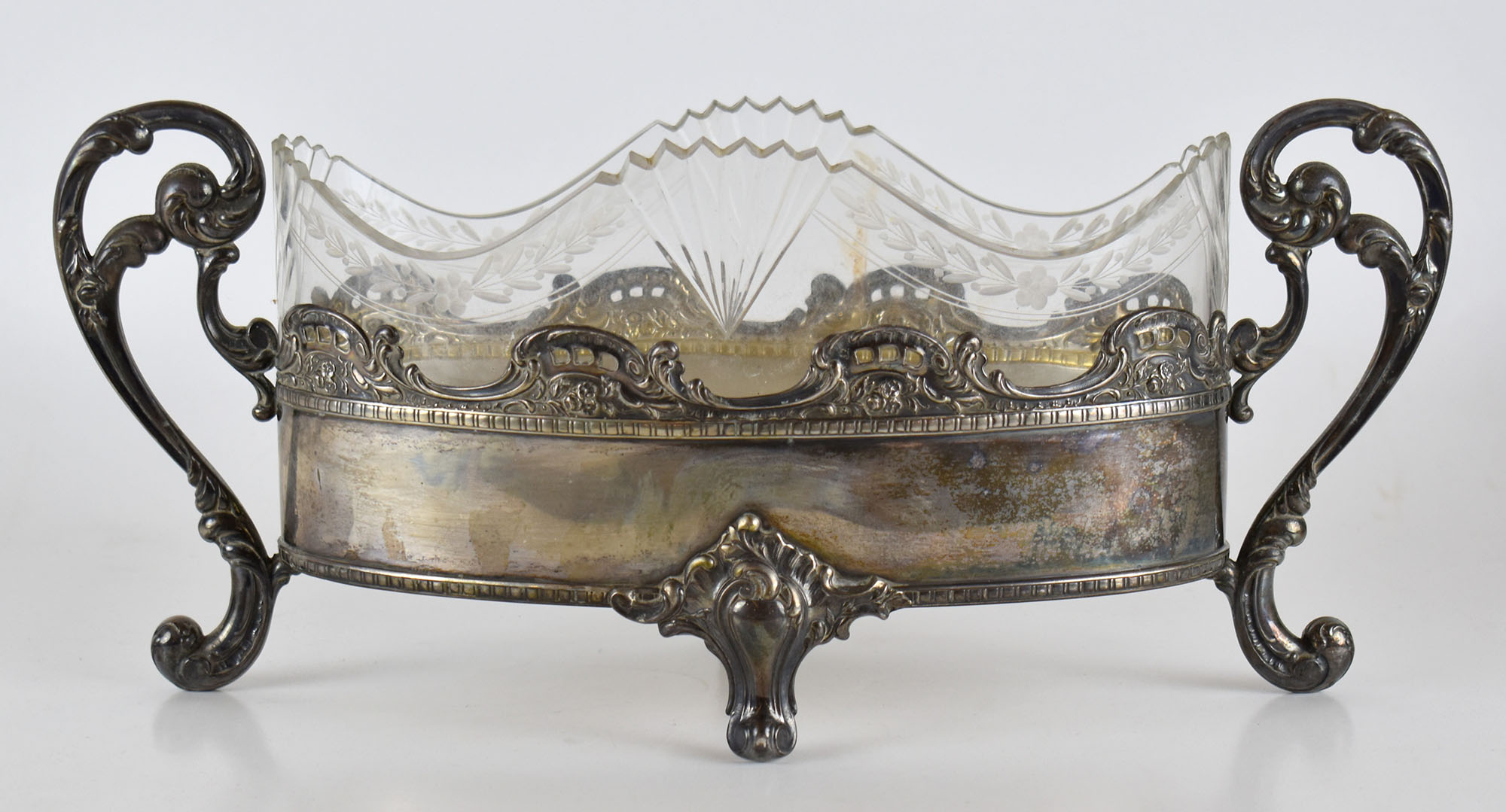 Centrotavola biansato in argento e vetro