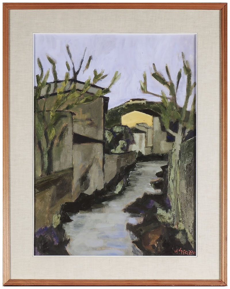 RENZO GRAZZINI (1912-1990) Scorcio di strada olio su tavoletta, firmato, in cornice cm 70x50 STREET VIEW, OIL ON PANEL