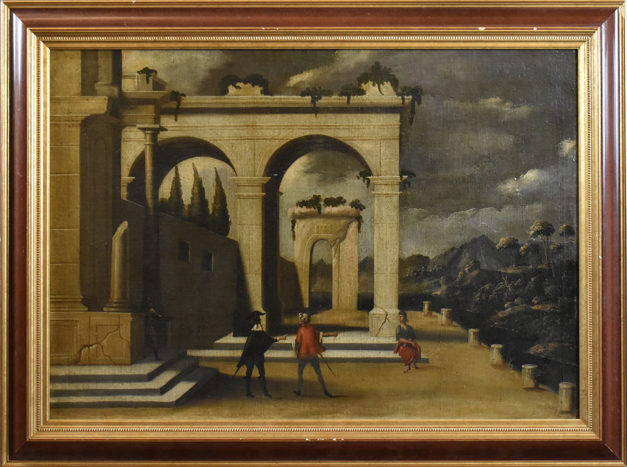 Previous Lot 0353 Next Casa d'Aste Martini - C.so Cavallotti 76, 18038 Sanremo DALL'ANTICO AL MODERNO + ARTE ORIENTALE Sessione unica Saturday 21 June 2025 hours 15:00 (UTC +01:00) DIPINTO Scuola italiana del XVIII secoloArchitettura olio su telacm. 90x63