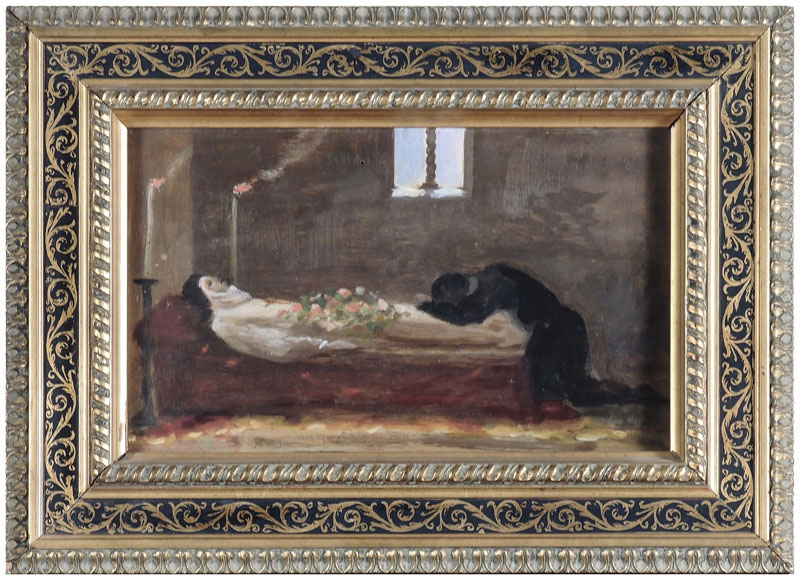SCUOLA TOSCANA DELLA METÀ DEL XIX SECOLO Esposizione di Santa Caterina da Siena olio su tavoletta, in cornice cm 19,5x32,5 Saint Katherine from Siena, oil on panel