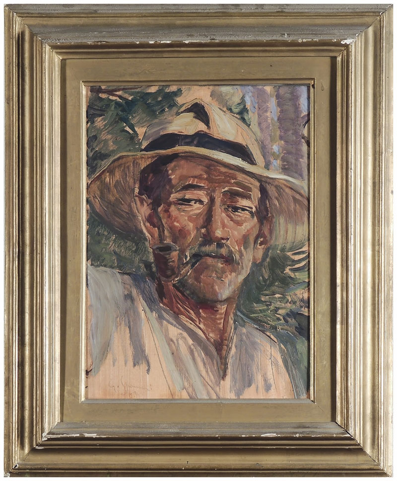 GAETANO SPINELLI (1887-1945) Ritratto maschile nel suo studio 1934 bozzetto ad olio su tavoletta, firmato e datato 1934, in cornice cm 37,5x26,5 MALE PORTRAIT, OIL ON PANEL