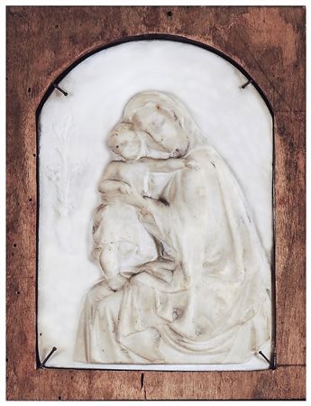 AMALIA DUPRÈ (1842-1928) Madonna con Bambino bassorilievo in marmo di forma centinata, in cornice cm 18,5x13 MADONNA AND THE CHILD, MARBLE LOW RELIEF