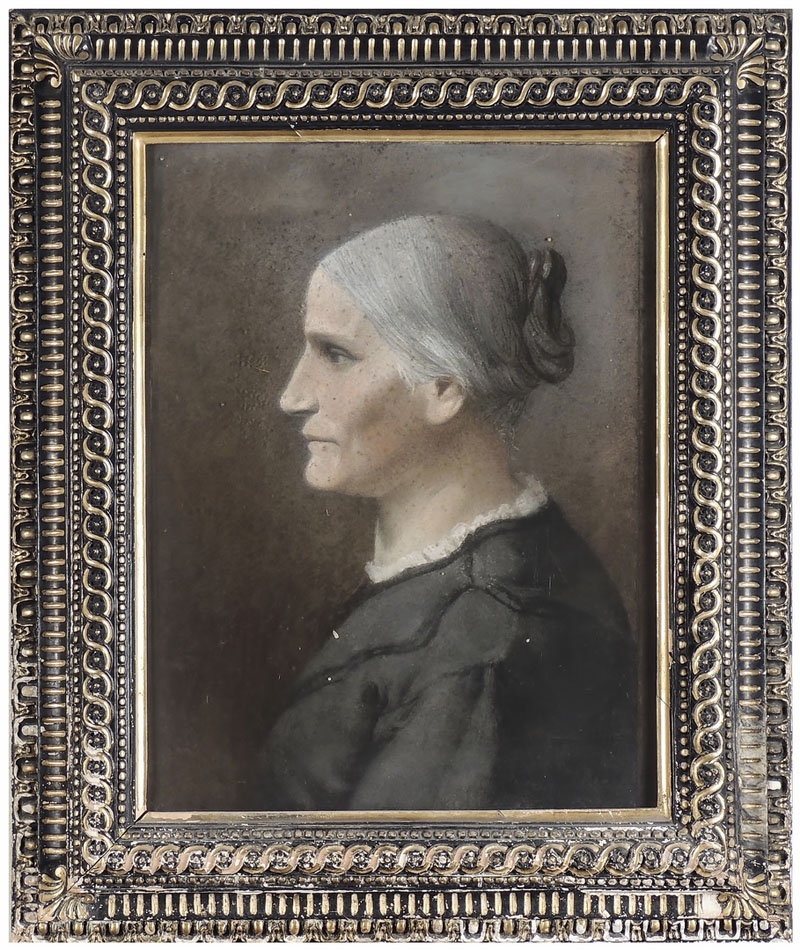 GIOVANNI DUPRÈ (1817-1882) Ritratto della Moglie Maria di profilo pastello su carta, in cornice cm 46x35 Al verso reca iscrizione autografa PORTRAIT OF HIS WIFE MARIA, PASTEL ON PAPER