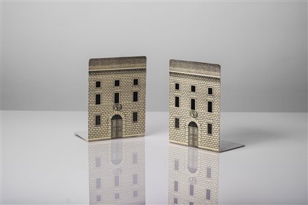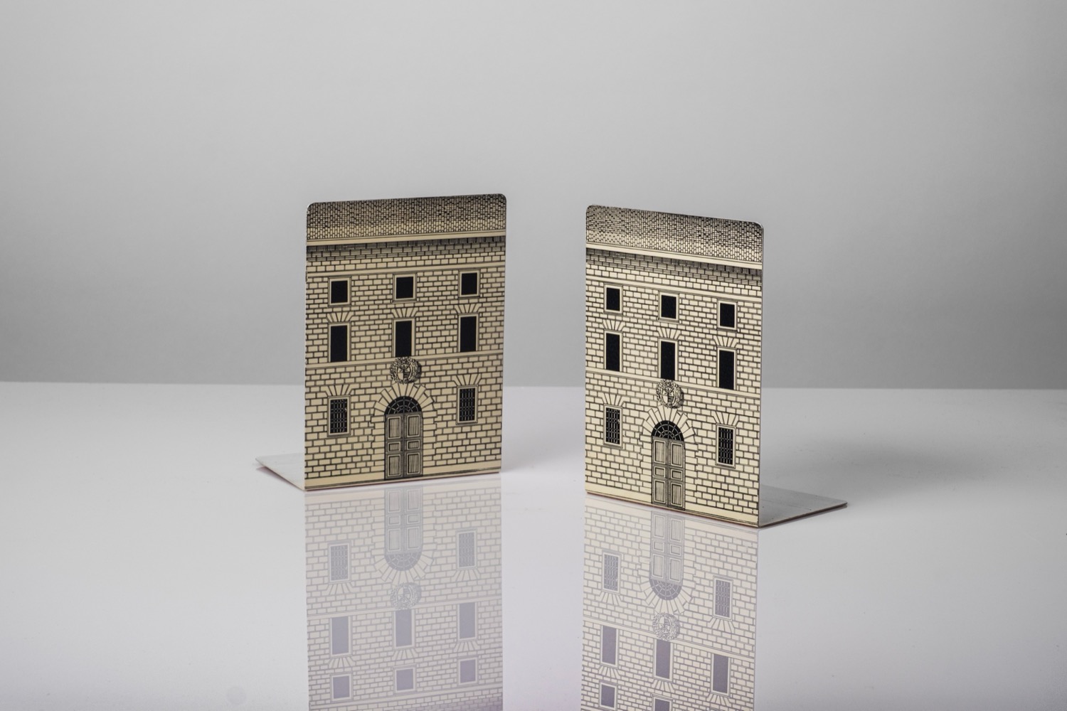 Piero Fornasetti (Milano 10/11/1913 - Milano 09/10/1988) - Coppia di fermalibri, decoro Architettura, 1960 circa