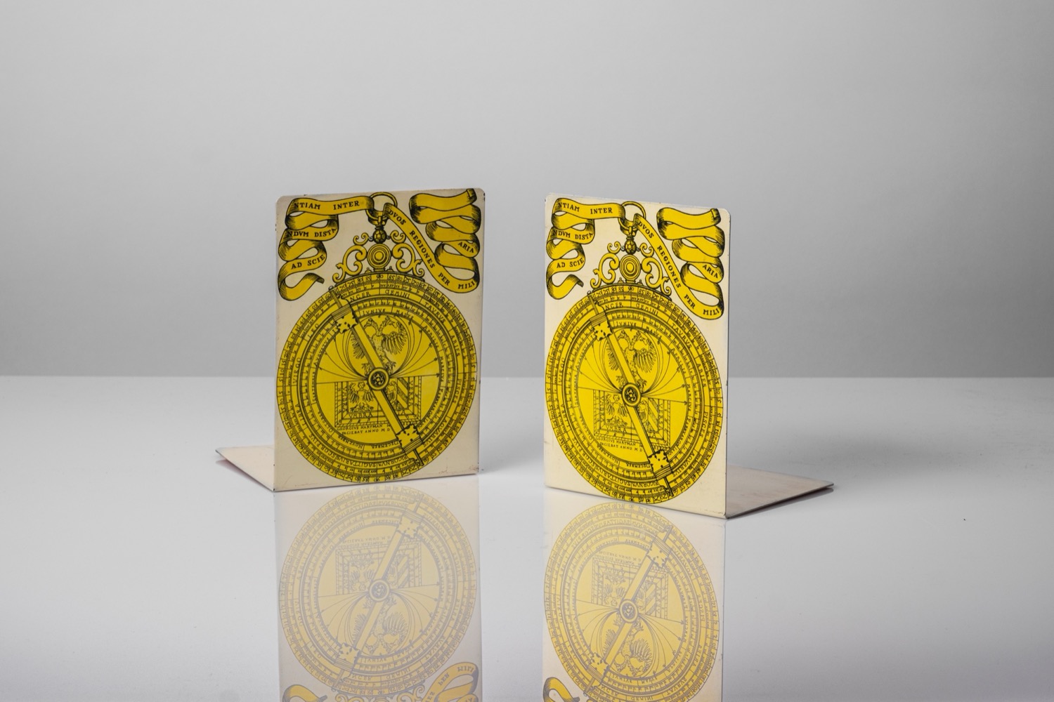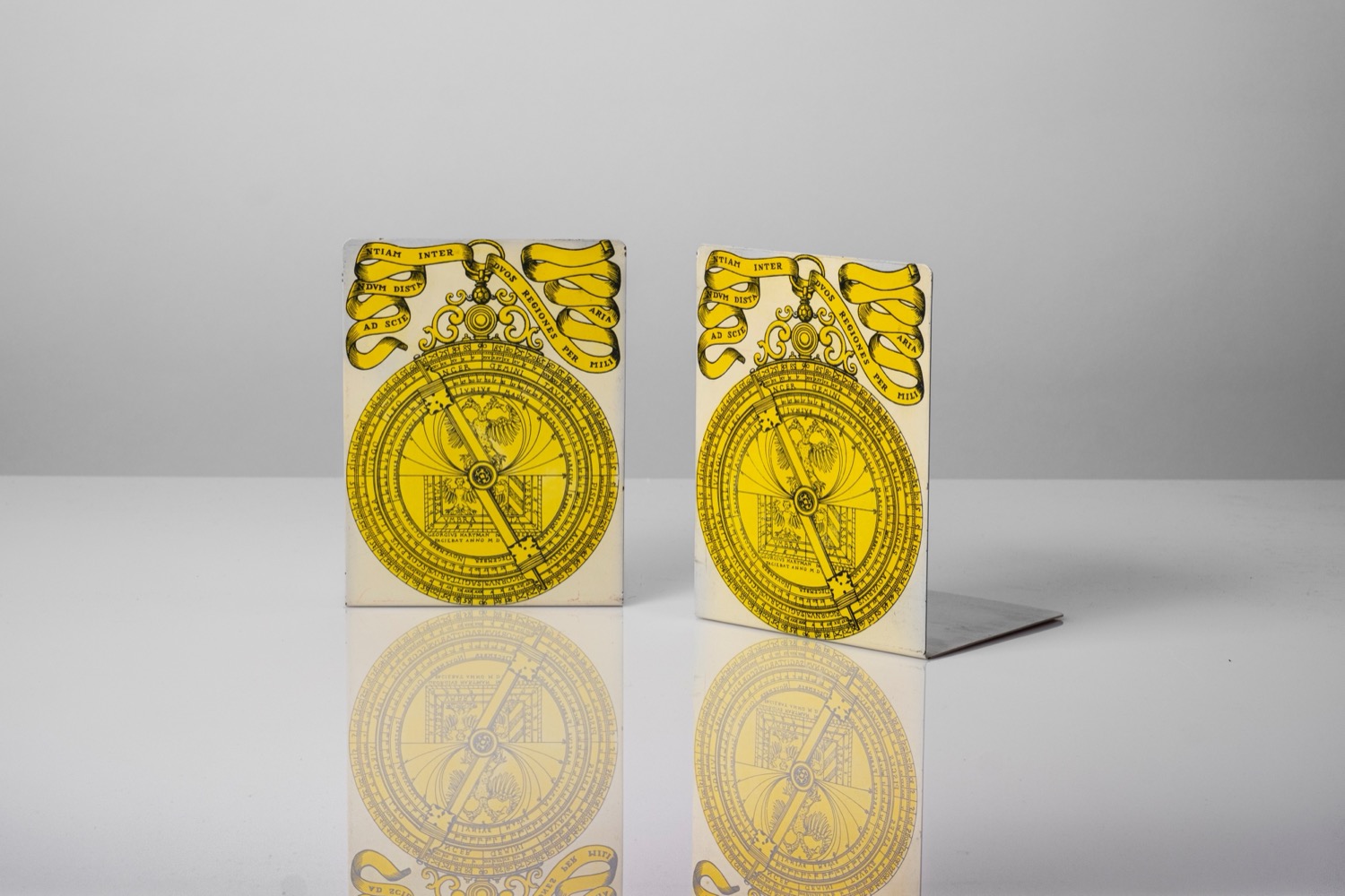 Piero Fornasetti (Milano 10/11/1913 - Milano 09/10/1988) - Coppia di fermalibri, decoro Astrolabio n.02, 1960 circa