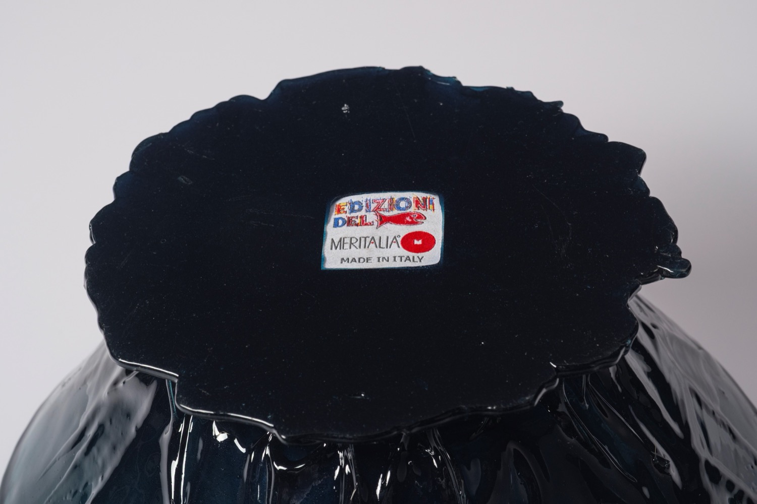 Etichetta originale EDIZIONI DEL PESCE MERITALIA, MADE IN ITALY sotto la base