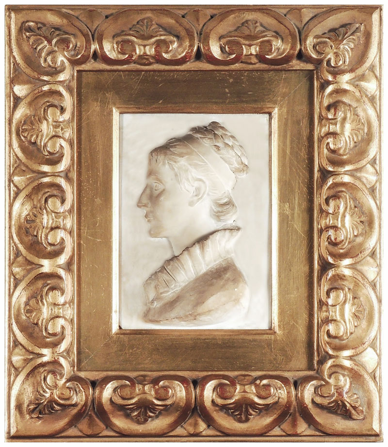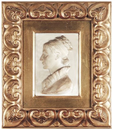 GIOVANNI DUPRÈ (1817-1882) Ritratto della figlia Giuseppina bassorilievo in marmo, in cornice cm 18x12,5 PORTRAIT OF THE DAUGHTER GIUSEPPINA, MARBLE LOW RELIEF