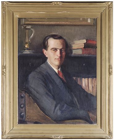 GAETANO SPINELLI (1887-1945) Ritratto di Paolo Ciardi Duprè olio su tela, firmato, in cornice cm 73x54 PORTRAIT OF PAOLO CIARDI DUPRÈ, OIL ON CANVAS