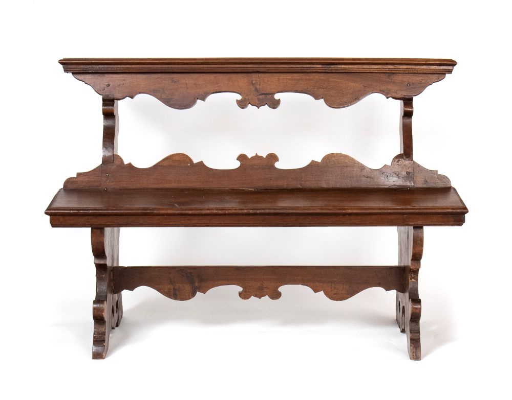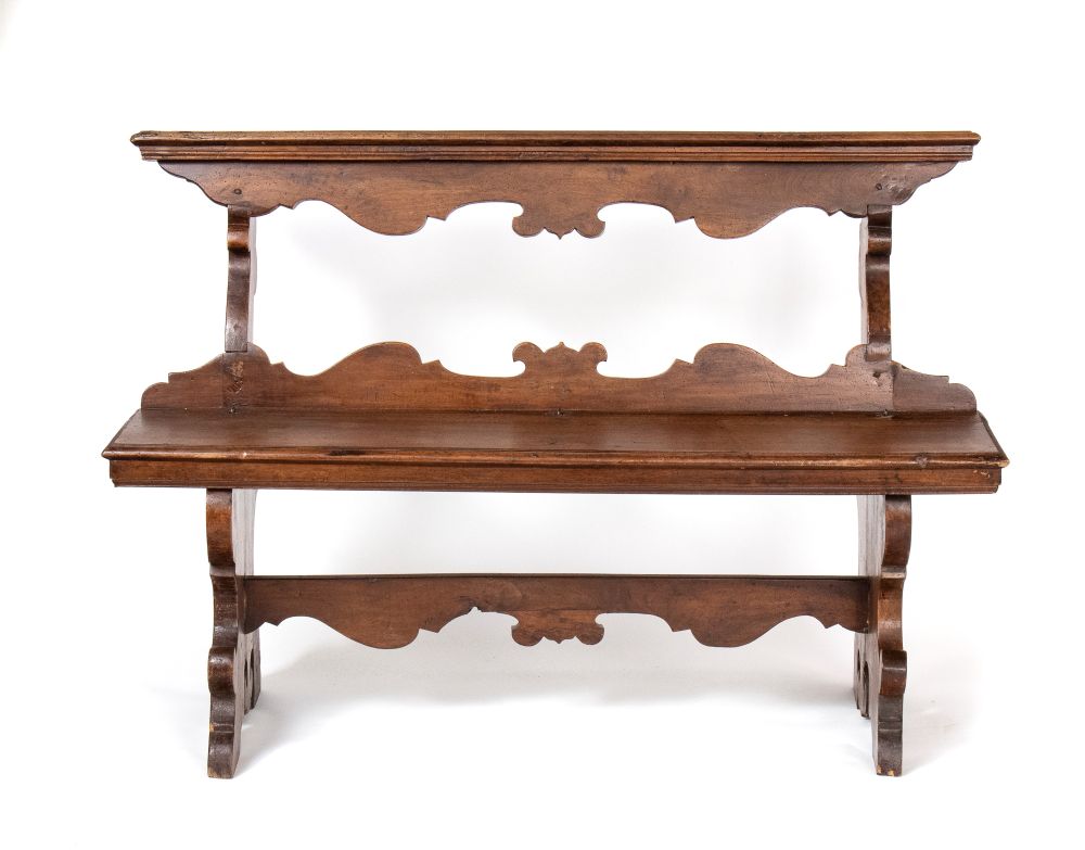 Coppia di panche da chiesa italiane XVIII secolo Altezza x larghezza x profondità: 87 x 124 x 50 cm. Altezza seduta: 47 cm.