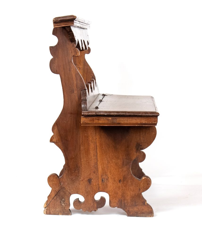 in legno di noce, finemente intagliate, con seduta ribaltabile.