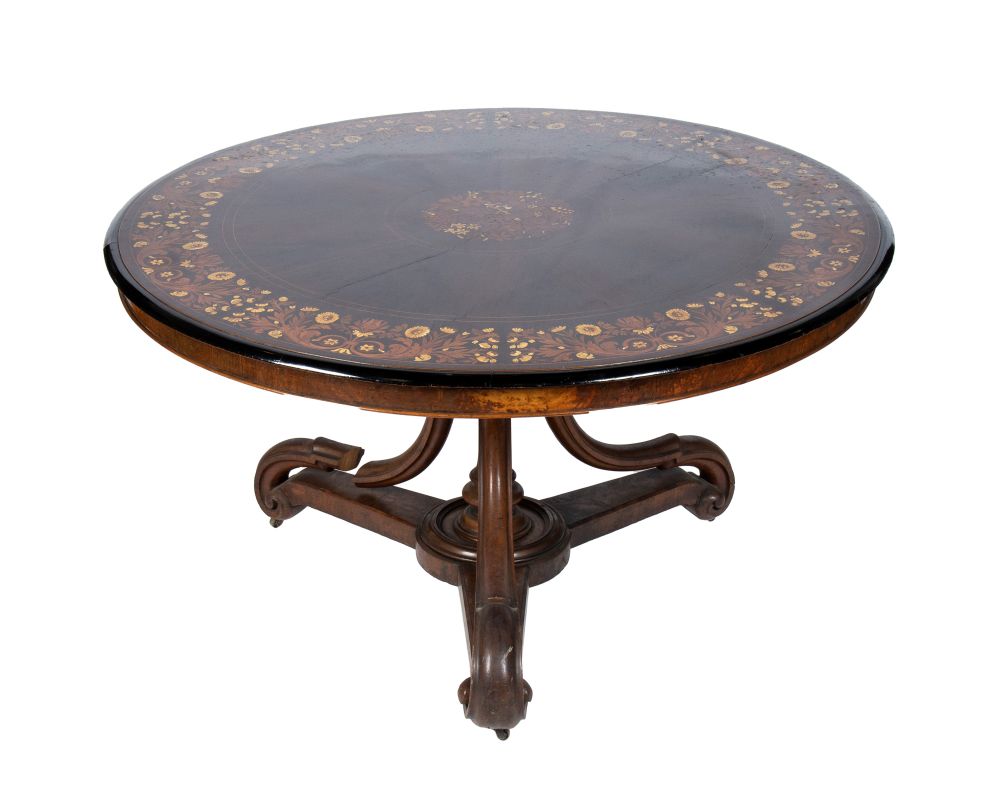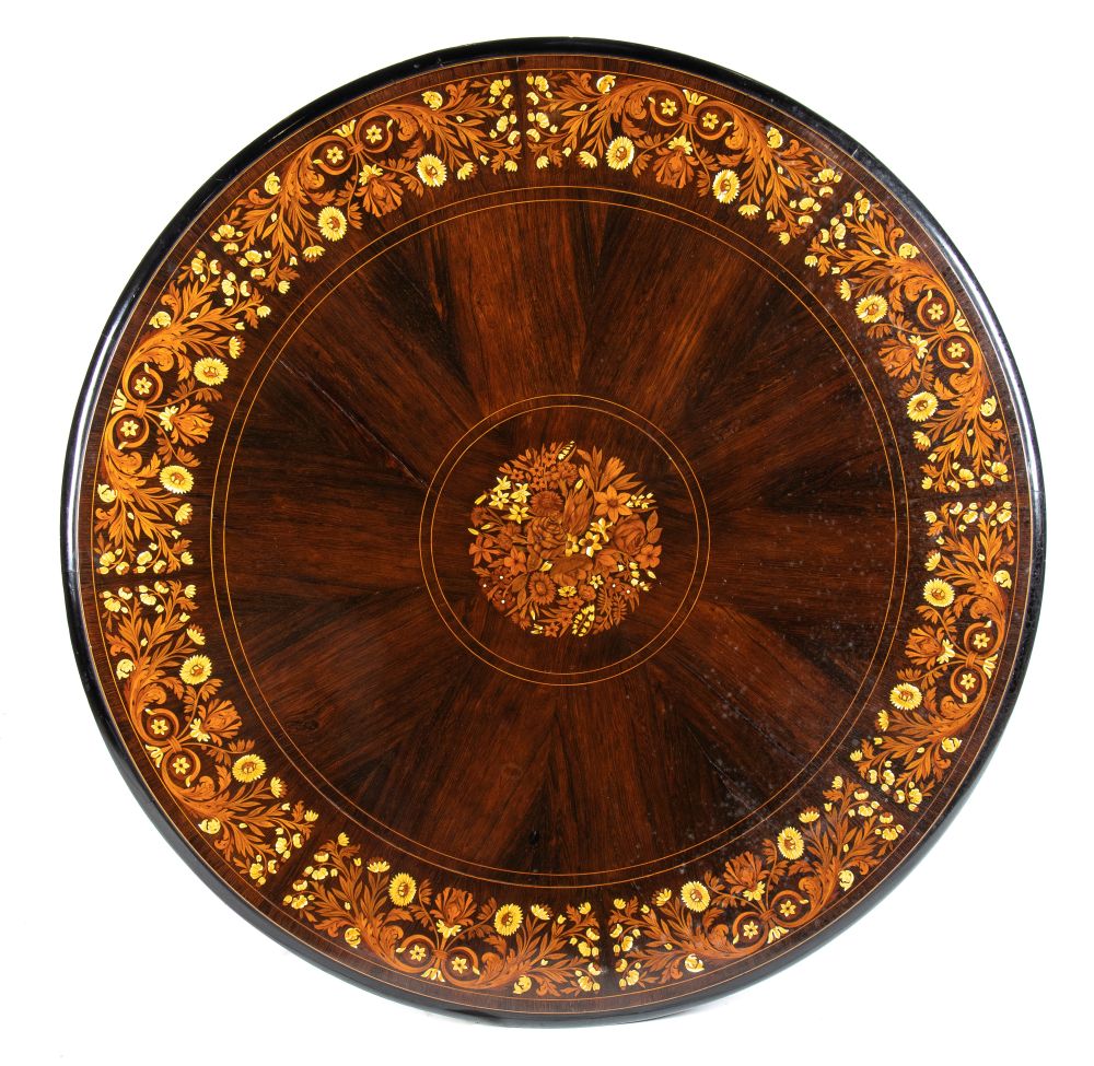 Lot 133 | Tavolo Vittoriano inglese intarsiato XIX secolo Altezza x diametro: 72 x 130 cm
