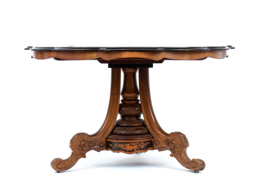 Tavolo Vittoriano inglese a vela intarsiato 1850 circa