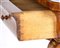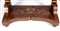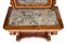 in piuma di mogano, con intarsi in legno di acero a motivi floreali e cigni, specchio originale, piano in marmo. Un unico cassetto frontale.