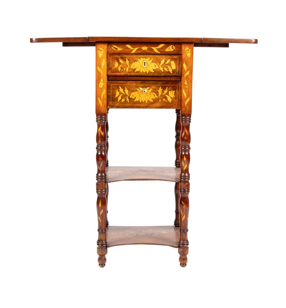 Lot 184 | Tavolino étagère olandese con alette metà XIX secolo Altezza x larghezza x profondità: 99 x 50 x 37 cm Larghezza con piani laterali aperti 93 cm