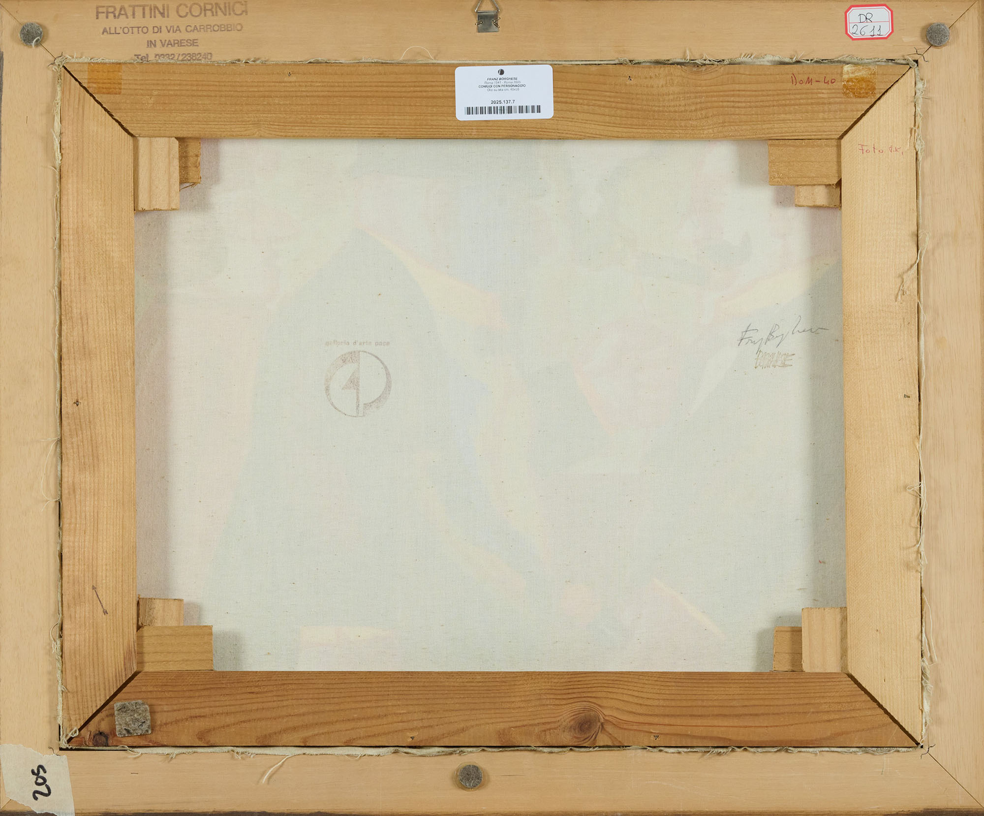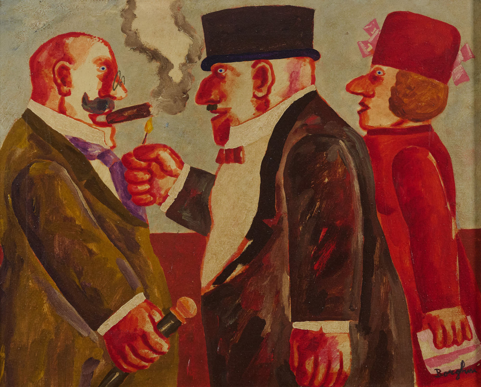Franz Borghese (Roma, 1941 - Roma, 2005) Coniugi con personaggio Olio su tela...