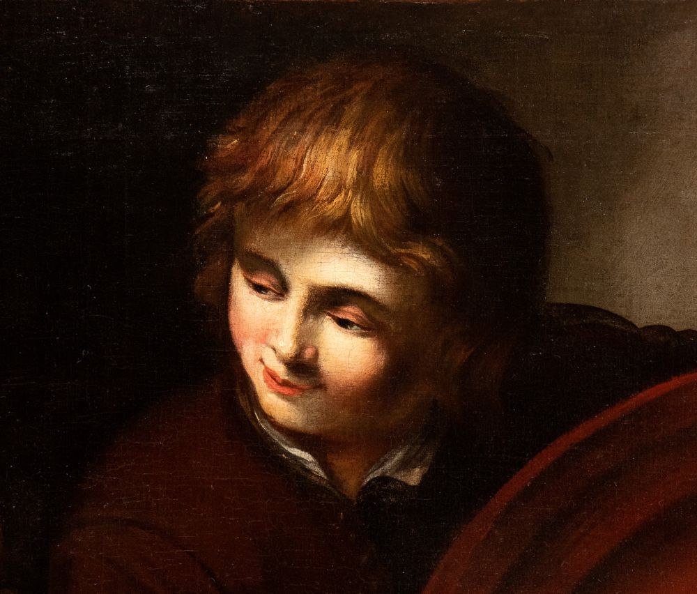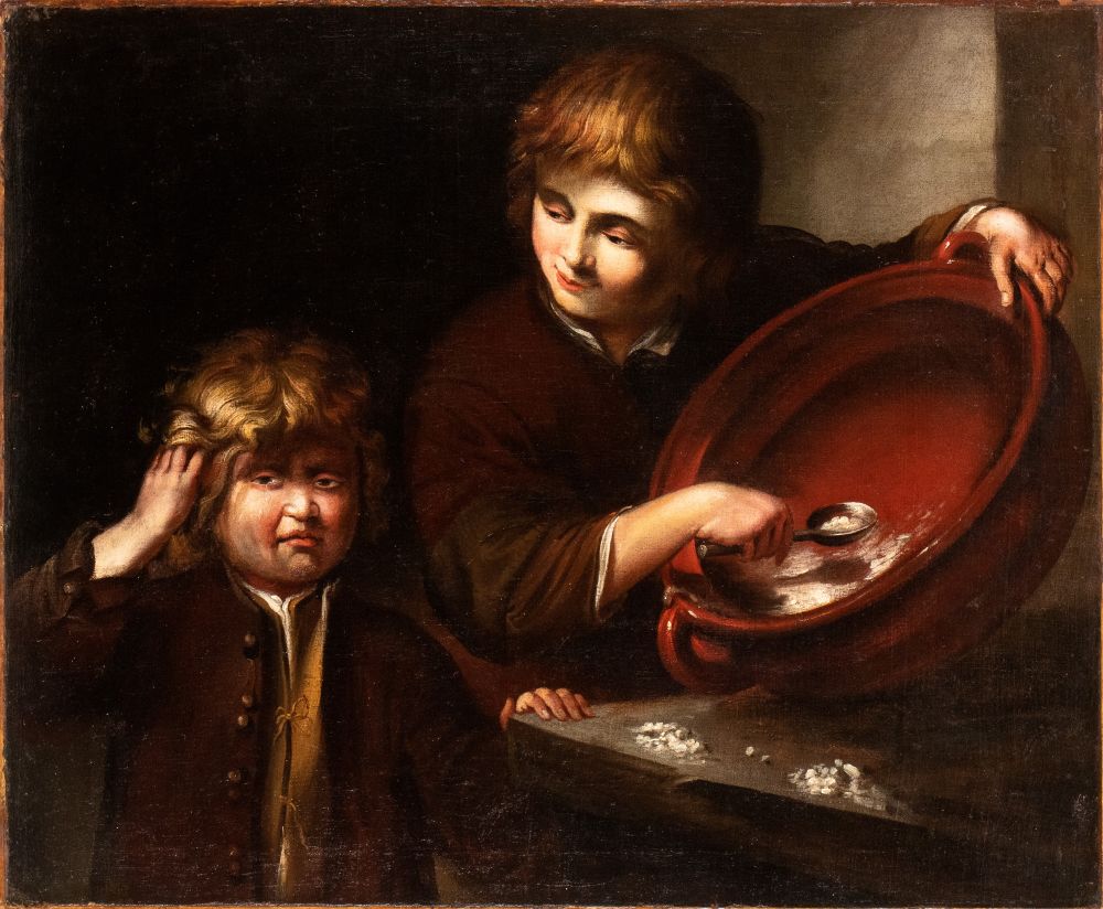 Artista lombardo, XVII secolo Scena di genere con due fanciulli in cucina...