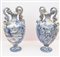 Vasi bianchi dipinti nei toni del blu con scene bibliche, paesaggi e decori.