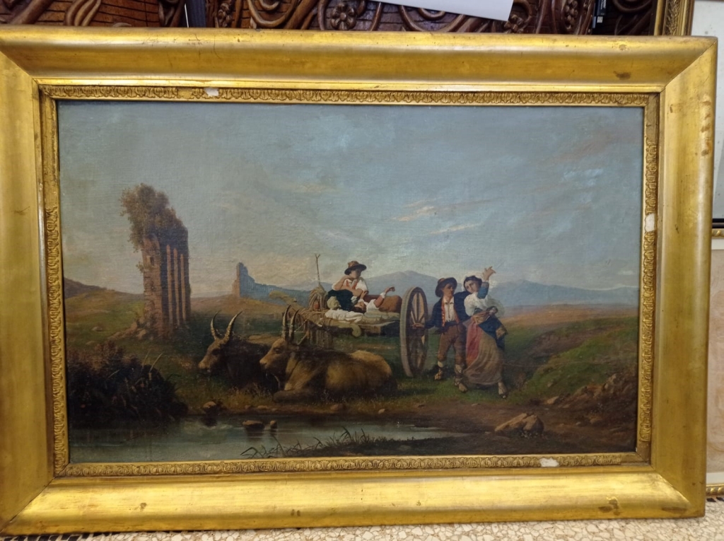 Pittore romano del XIX secolo olio su tela cm 60x92,5; con cornice cm 77,5x111