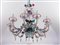 Modello Cà Rezzonico a 12 luci. Opera di raffinata manifattura, in vetro cristallino, con fiori in pasta vitrea policroma. Soffiato e "tirato a pinza", con coppe "cabochon".