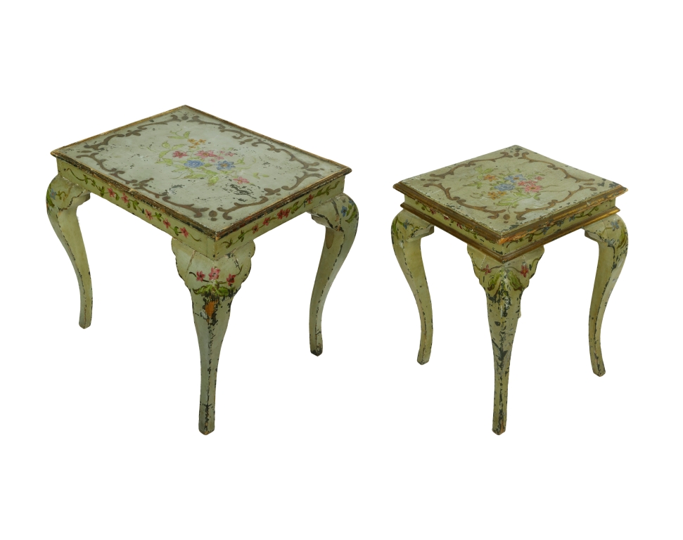 Coppia di tavolini veneti Fine XIX secolo cm 46x47x37; cm 46x34x34