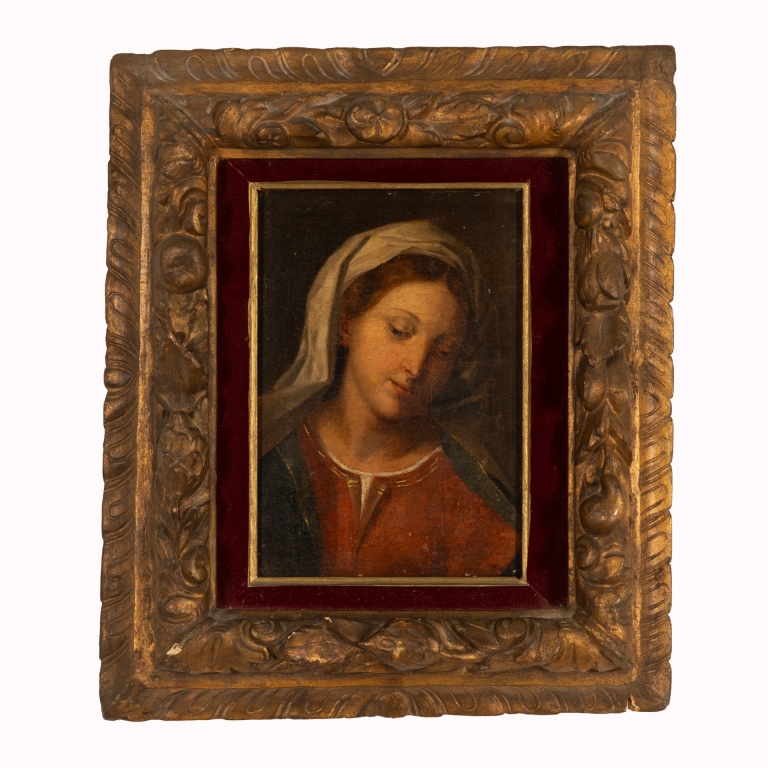 Vergine fine XVII inizi XVIII secolo olio su tela cm 25,5x18; con cornice 41,5x35,3