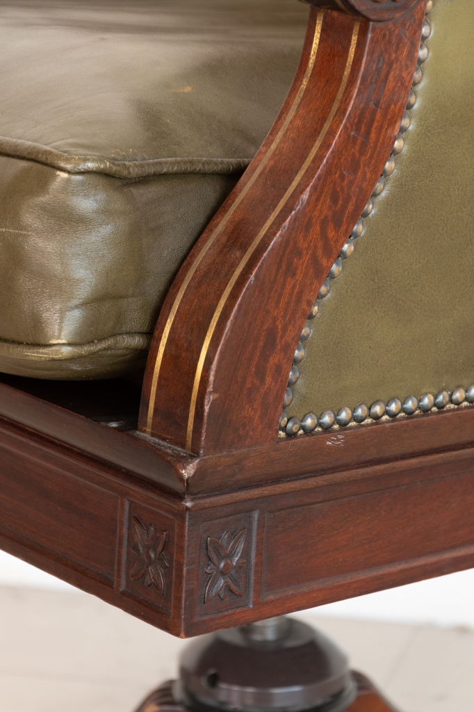 Previous Lot 288 Next Gliubich Casa d’Aste - Corso Vittorio Emanuele II 9, 67100 L'Aquila ASTA 33 - LOST AND FOUND ASTA 33 - LOST AND FOUND - SESSIONE II Thursday 26 June 2025 hours 15:00 (UTC +01:00) Poltrona Director in pelle verde. Inghilterra, inizi del XX secolo cm 125x62x80