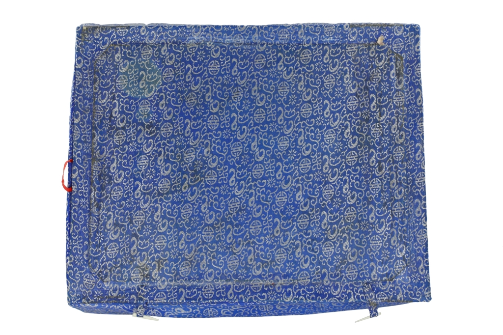 Tre figure in porcellana in scatola originale rivestita in seta blu