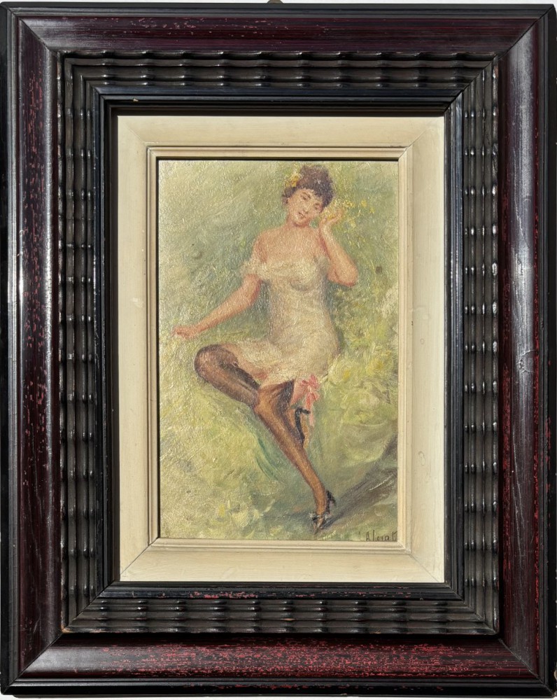 Ambrogio Alciati Vercelli 1878 - 1929 Milano La Soubrette Olio su cartone cm 29x19 firmato in basso a dx
