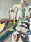 Bernard Damiano (1926 - 2000) ETRUSCHI (COPPIA), 1978 olio su tela, cm 80x60...