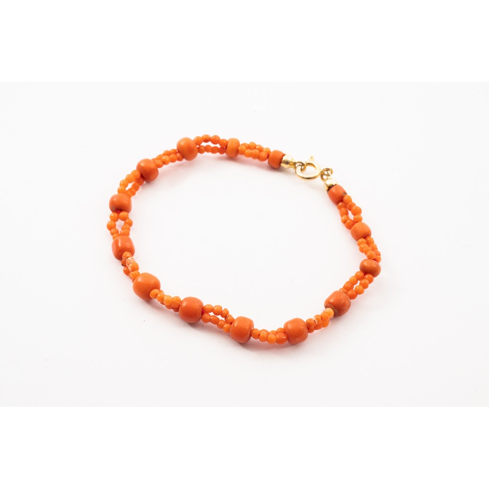 BRACCIALE in corallo, chiusura in argento 925 dorato (g. 7,10).