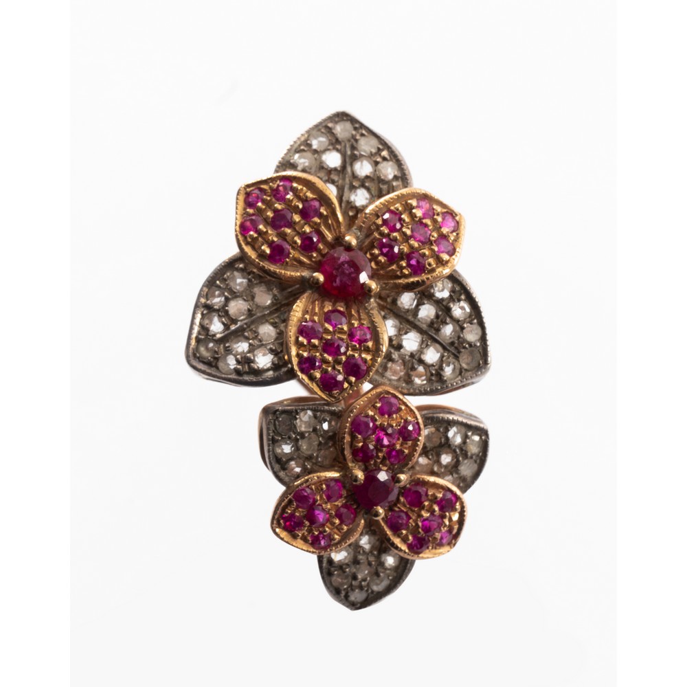 ANELLO in oro giallo 9 KT e argento con diamanti e rubini