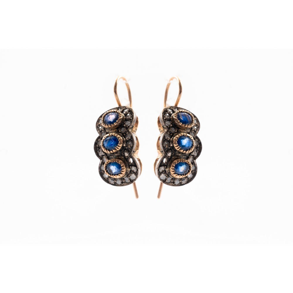 ORECCHINI in oro giallo 9 KT e argento con diamanti e zaffiri