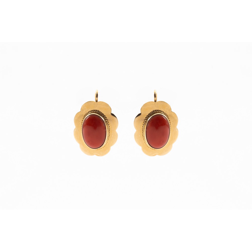 ORECCHINI in oro giallo 18 KT e cabochon in corallo rosso (g. 6,95).