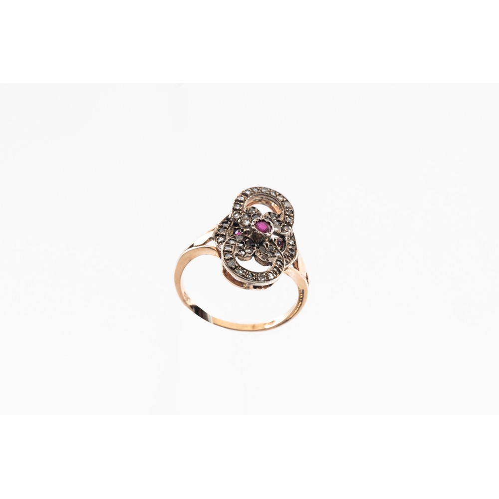 ANELLO in oro giallo 9 KT e argento con diamanti e rubini