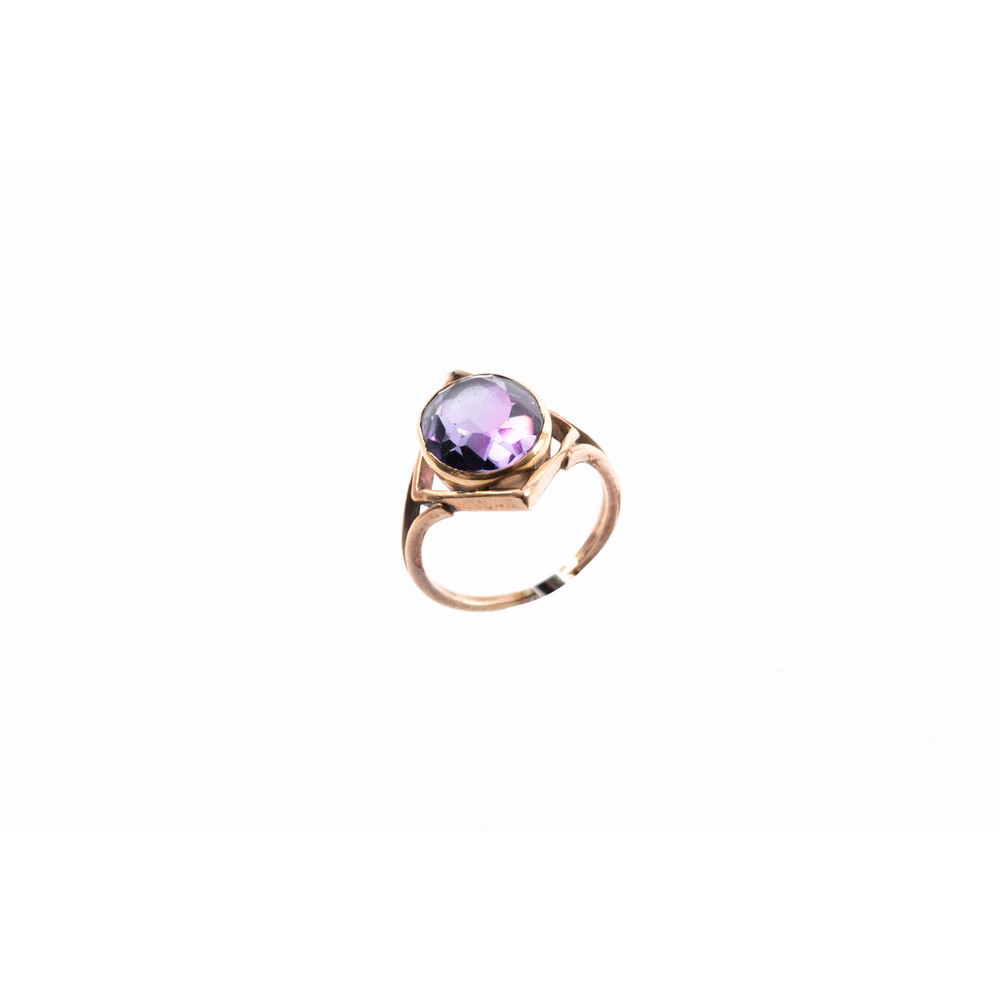 ANELLO in oro giallo 9 KT e ametista (g. 3,98).