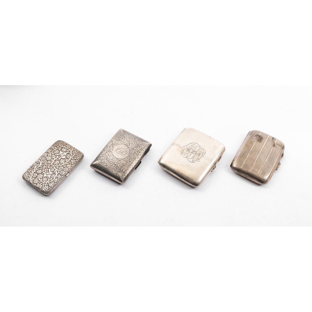 Tre portasigarette in argento (Officine di Birmingham del 1898/1930/1938) e portasigarette in argento riccamente sbalzato a motivo naturalistico (g. 270).