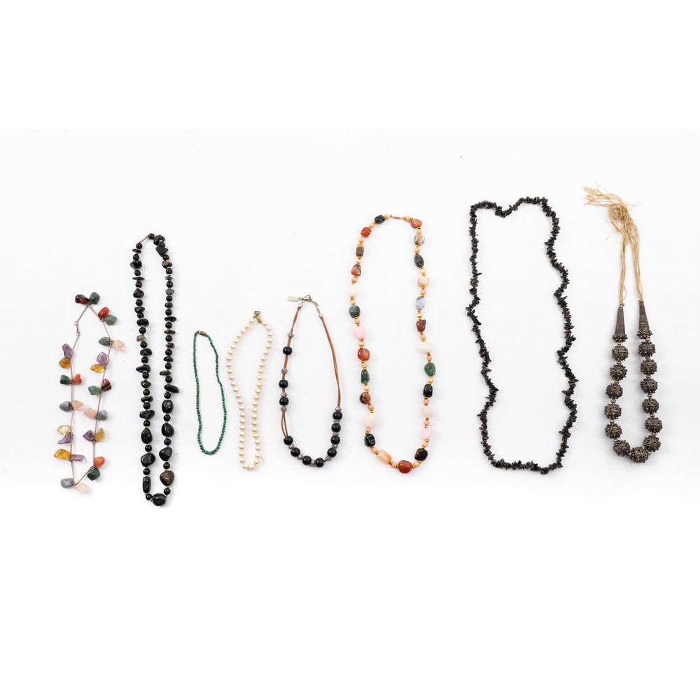 OTTO COLLANE di diversa tipologia di cui sei in pietra dura, una in argento ed una in perle sintetiche.