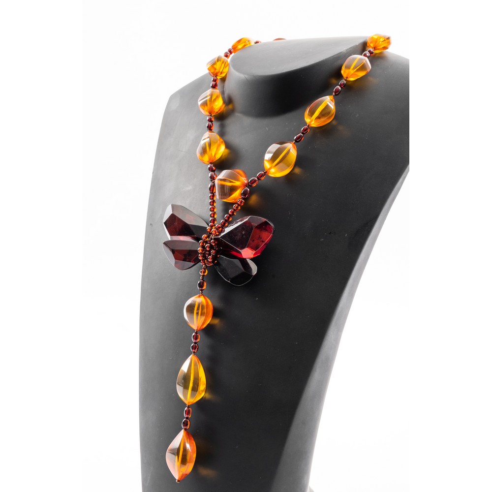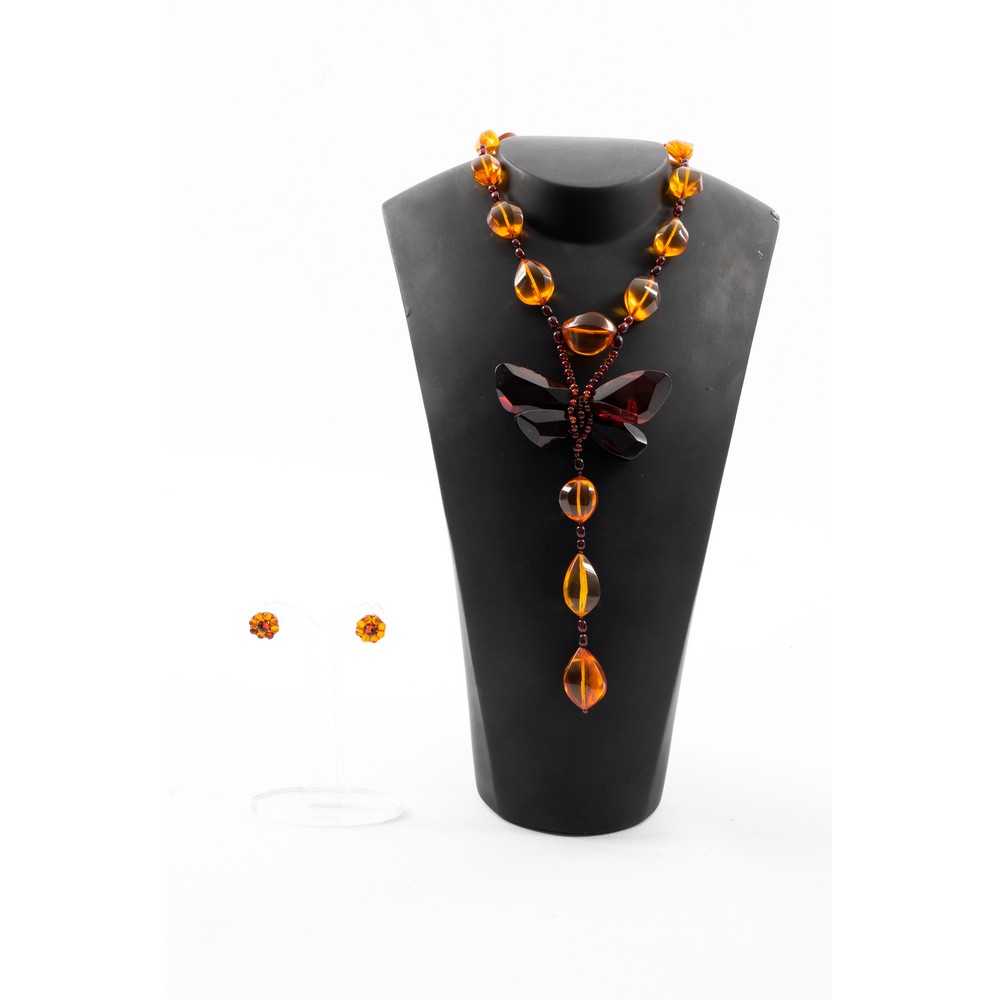 Collana in ambra e orecchini in ambra e argento.