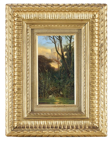Gaetano Fasanotti "Gli aironi" 1877 olio su tavola (cm 24,5x13,5) firmato e data
