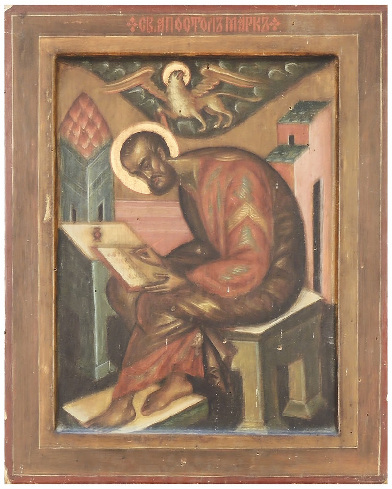 ICONA Scuola russa del XIX secolo San Marco tempera su tavola, lievi difetti...