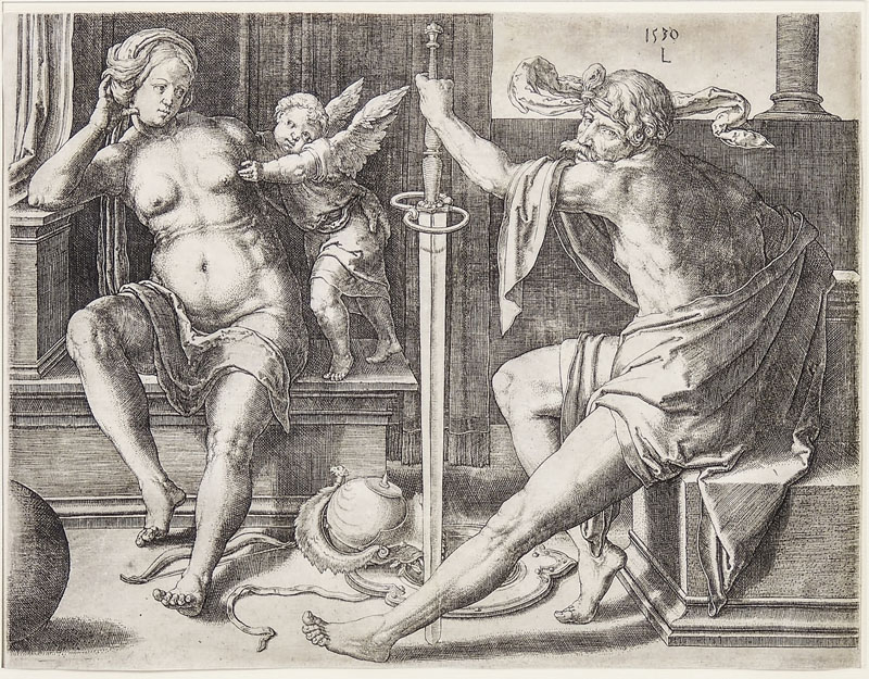LUCAS VAN LEYDEN (1494-1533) Marte, Venere e Cupido incisione, in cornice mm...