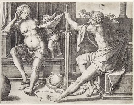 LUCAS VAN LEYDEN (1494-1533) Marte, Venere e Cupido incisione, in cornice mm 189x245 Bartsch VII p. 411 n. 137; Hollstein Xp. 156 n. 137 Al verso reca cartiglio Il Bulino Antiche Stampe, Milano MARS, VENUS AND CUPID, ENGRAVING, WITH LABEL ON REVERSE