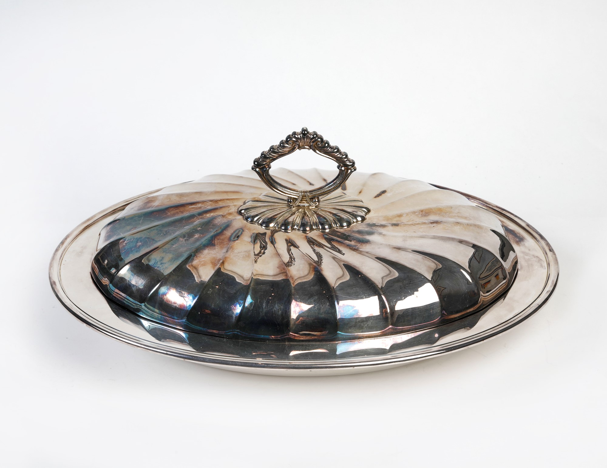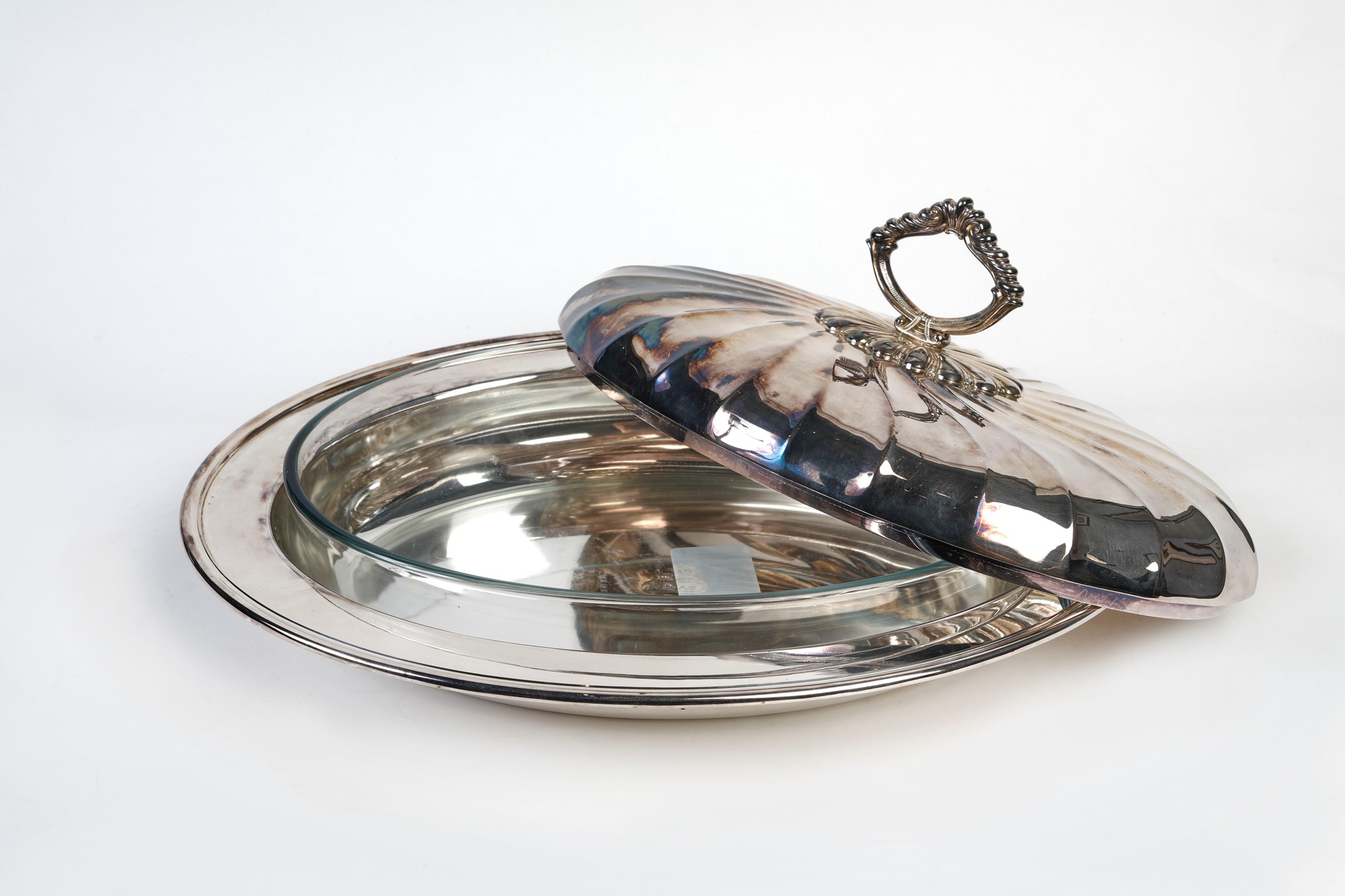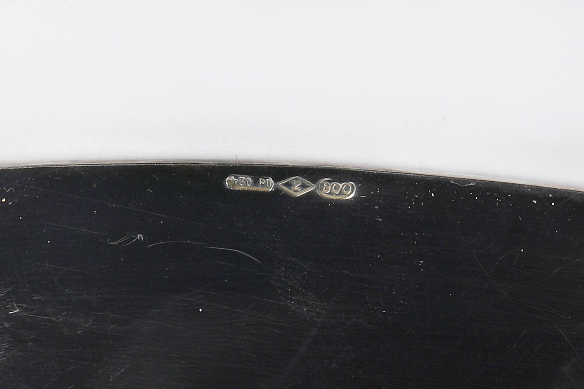 Porta teglia in argento 800. Cm 38x28,5. Reca punzoni: 800, 30 PD. Peso (solo argento): 1575 gr. Reca scatola originale.