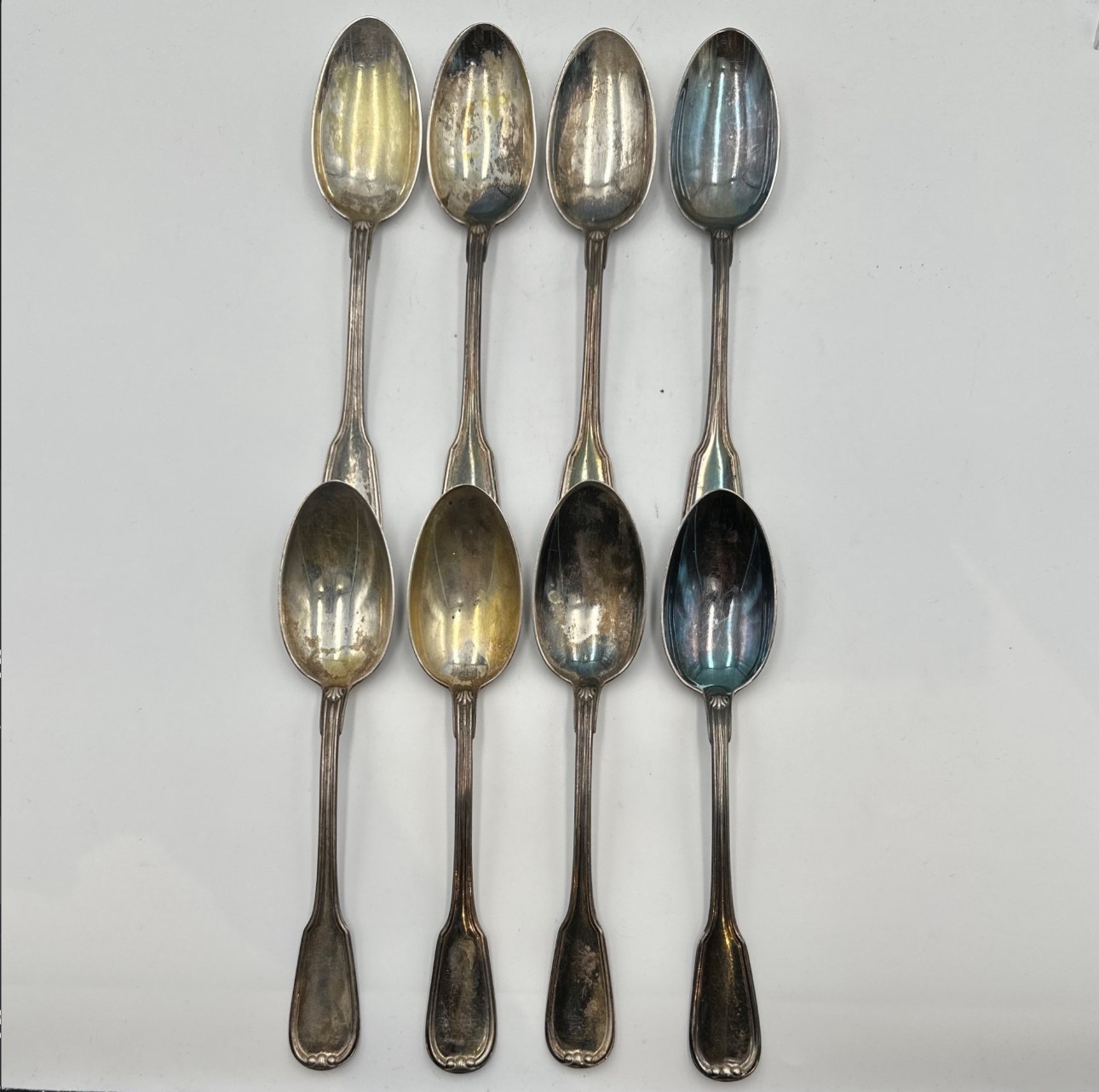Lotto composto da 8 cucchiai in argento 800. Peso: 604 gr.