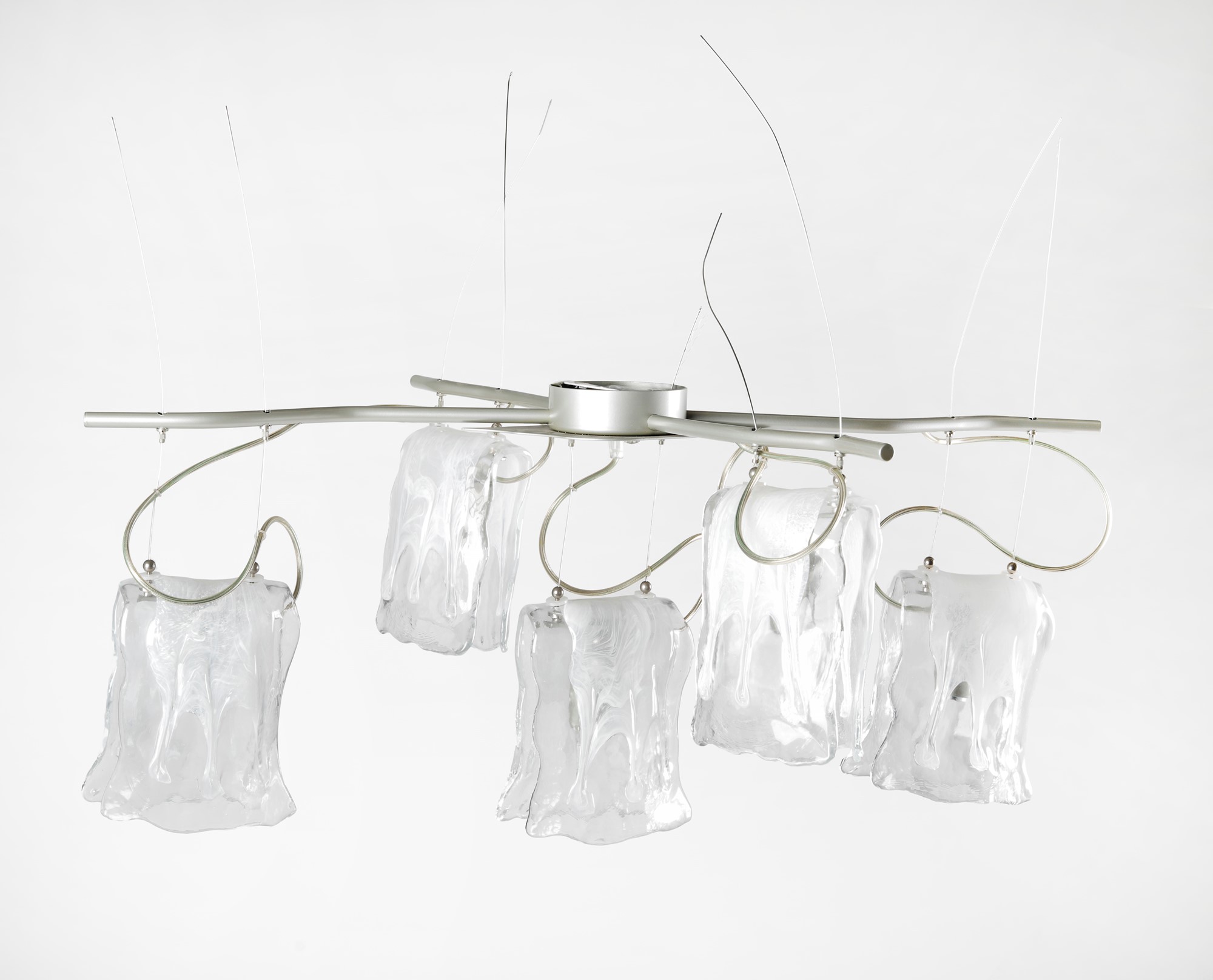 CARLO NASON (Murano 1935) Lampadario regolabile in metallo con vetri di Murano. 1970 circa. Prod. Stilux, Italia. Cm 82x64.
