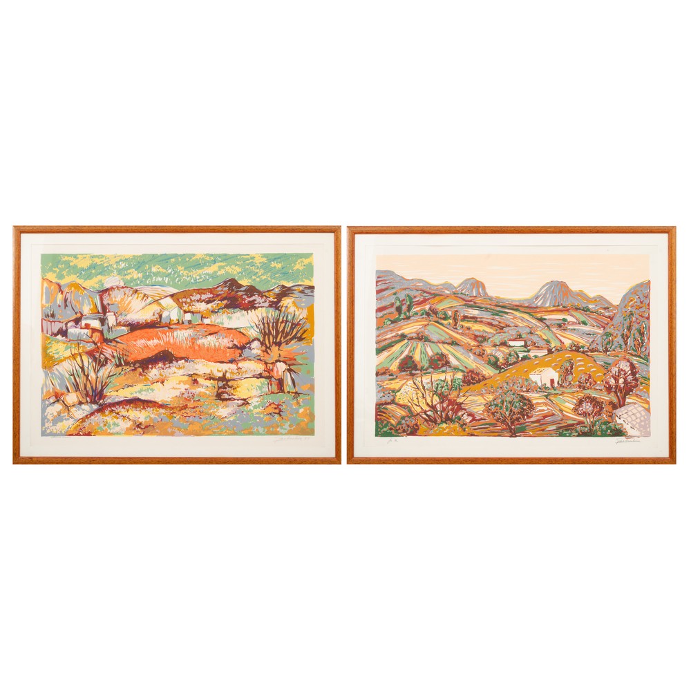 GIAMBECCHINA, Paesaggio, Due litografie a colori