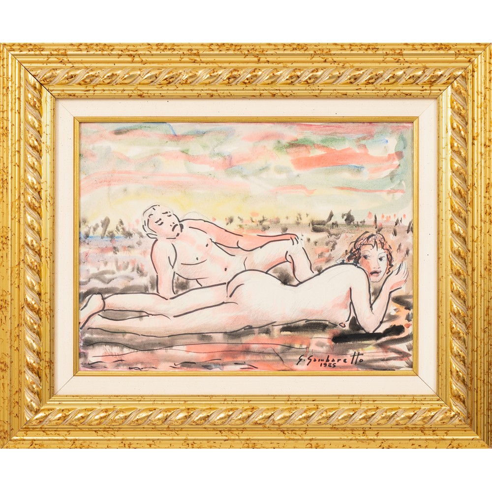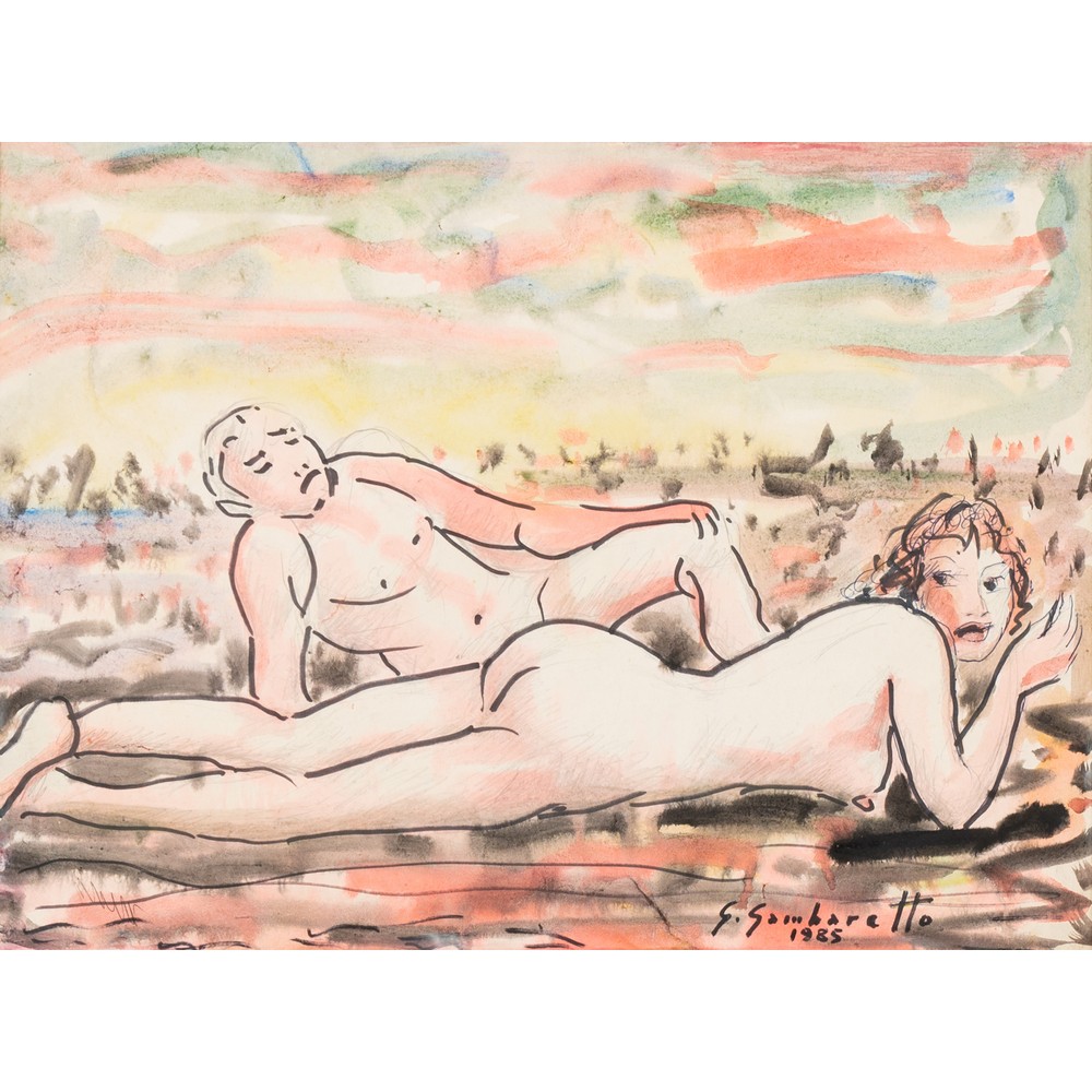 GIUSEPPE GAMBARETTO, Nudi, Tecnica mista su carta