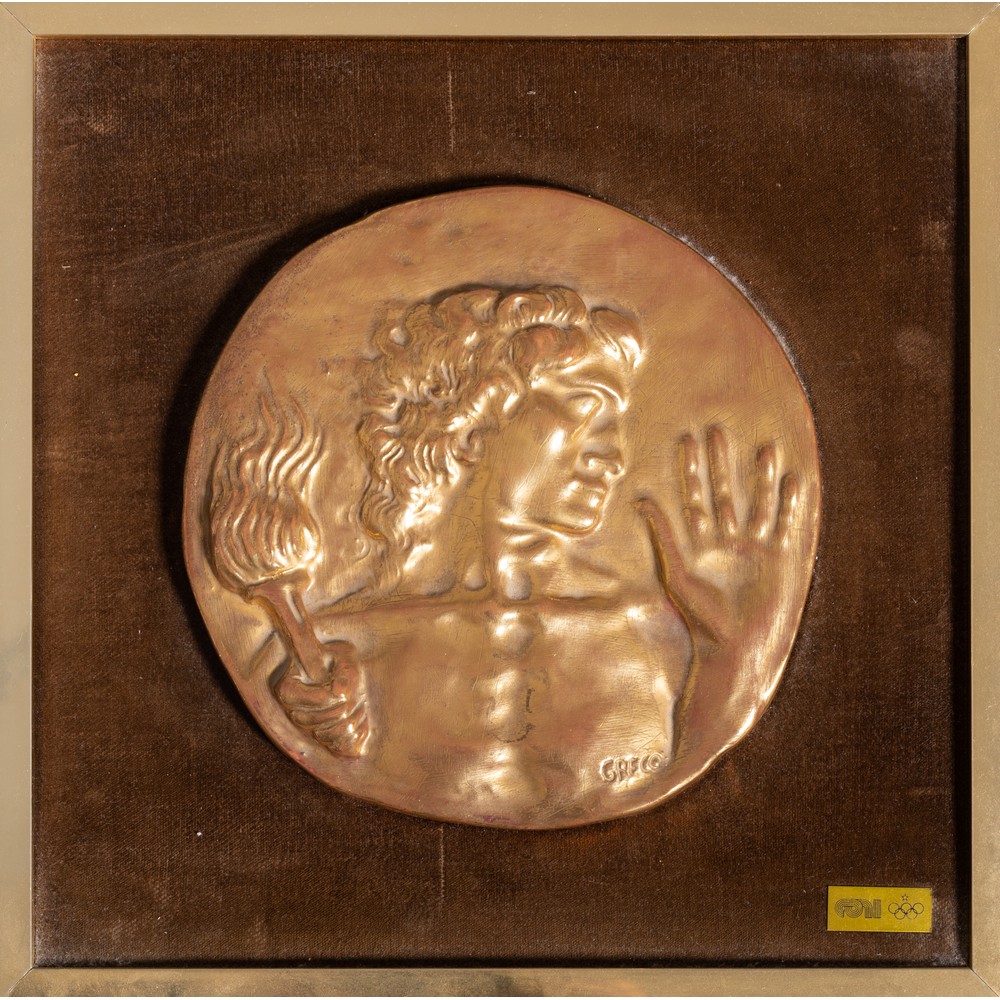 EMILIO GRECO, Fiaccola olimpica, Bassorilievo in metallo
