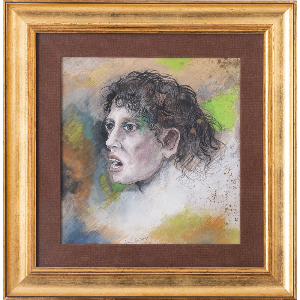 BRUNO CARUSO, Volto di uomo, Tecnica mista su cartone