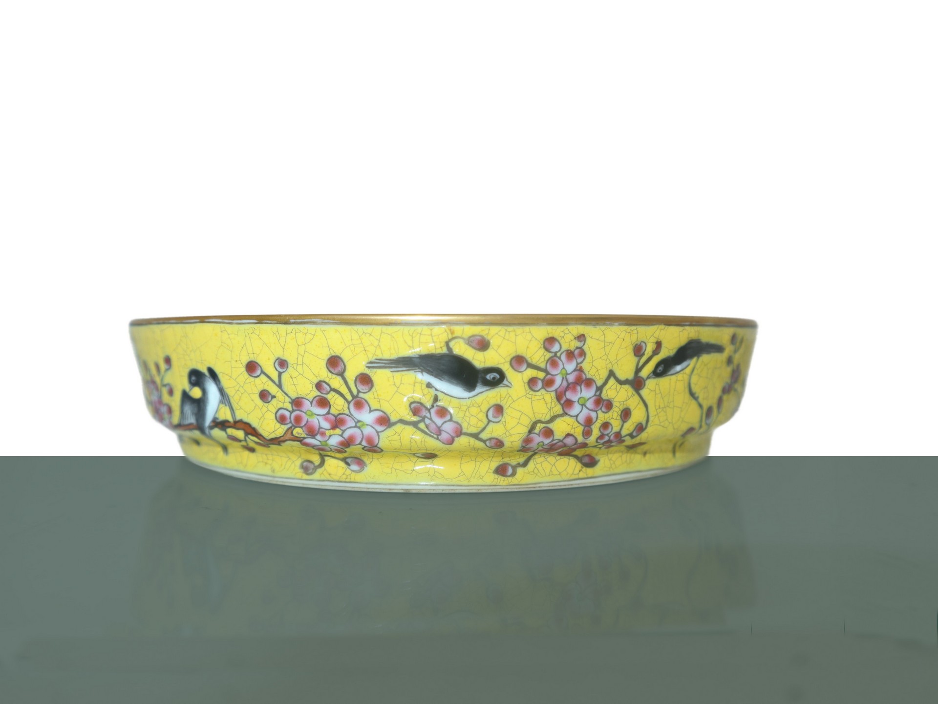 Ciotola gialla con decori di rondini in smalti cloisonnet, Qinq , Dinastia Tongzhi , periodo nian zhi